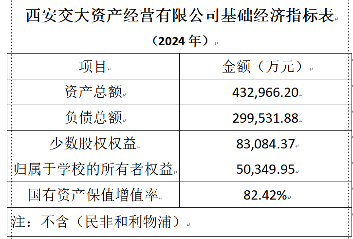 西安交大资产经营有限公司基础经济指标表